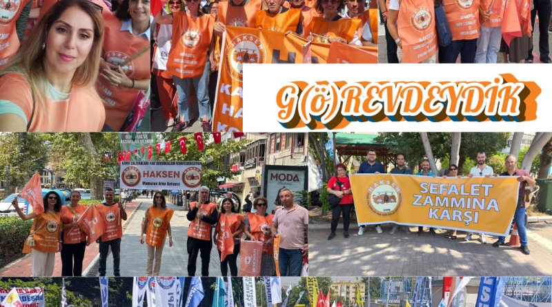 İÇİN G(Ö)REVDEYİZ! İŞYERLERİNDE, ALANLARDA OMUZ OMUZAYIZ!bugün Türkiye’nin dört bir yanında üretimden gelen gücümüzü kullanıyoruz, bugün hizmet üretmiyoruz. Sokaklardayız, alanlardayız. Başta kamu emekçileri ve emekliler olmak üzere tüm kamuoyu 4 milyon kamu emekçisini 2,5 milyon emekliyi kapsayan toplu sözleşme sürecini yakından takip ediyor. Ne yazık ki yıllardır uygulanan senaryo tekrar ediliyor, süreç bir kez daha oldubittiye getirilmek isteniyor.